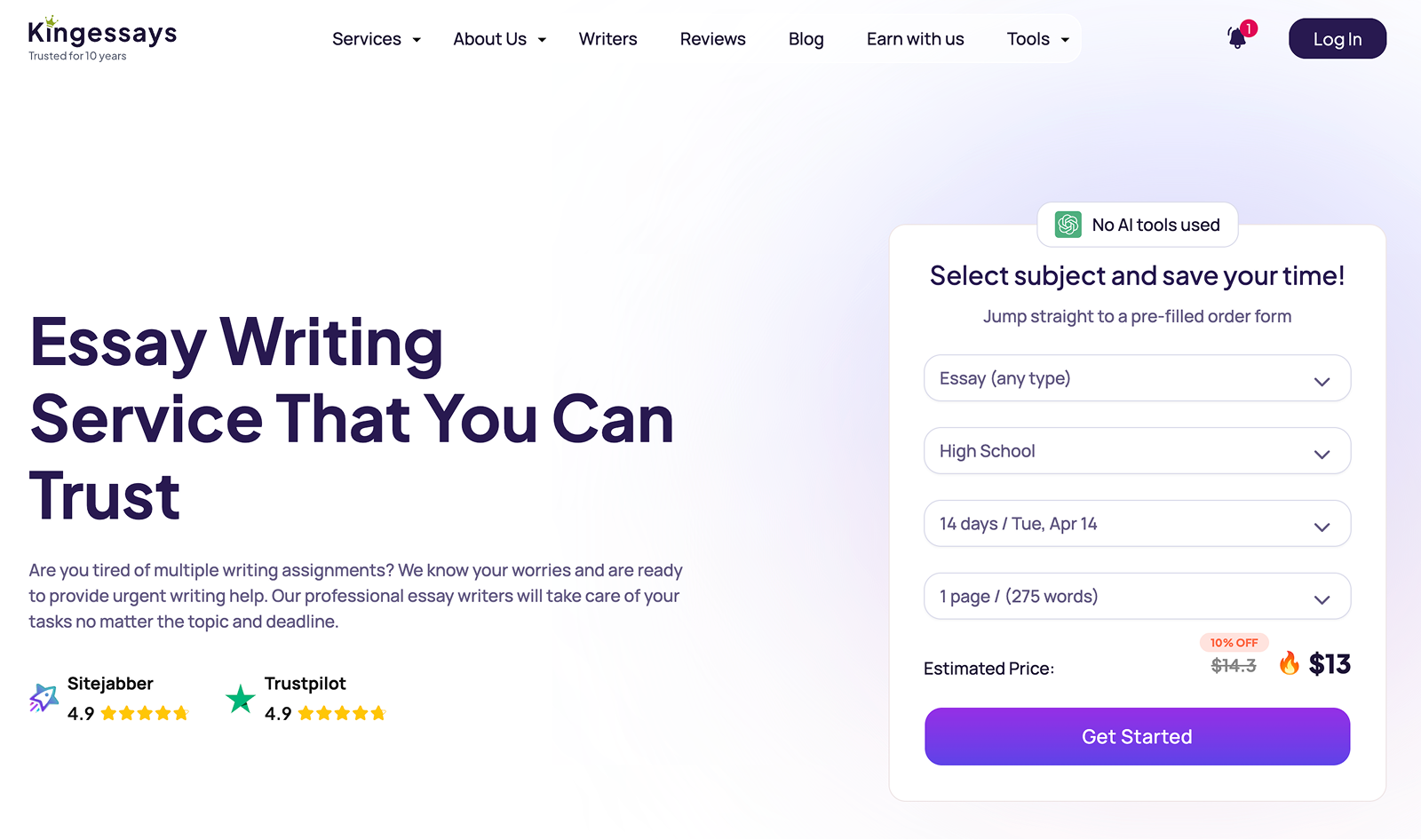 If you have a 10-page monster task and at least 7-10 days to spare, KingEssays is a "Buy." At $18.40 per page for a Top Writer, the quality-to-price ratio is hard to beat. You get a human expert, free formatting, and a paper that actually sounds like a university student wrote it.